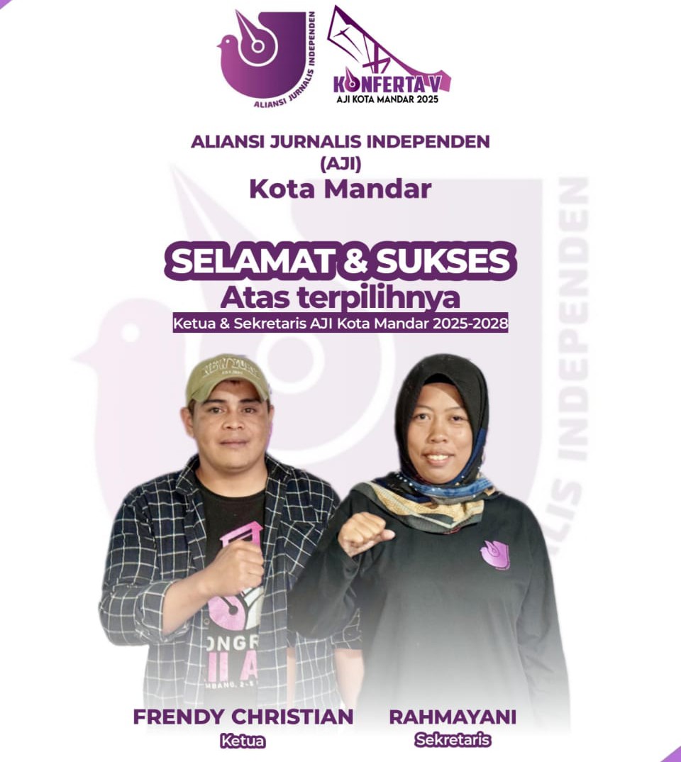 Konferta kali ini menetapkan Frendy Christian jadi Ketua dan Rahnayani Sekretaris AJI Kota Mandar periode 2025-2028.