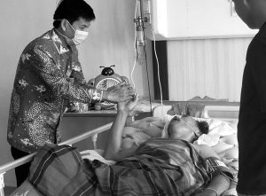 M. Zain sempat menyalami tangan Upa dan melakukan perbincangan sejenak. “Perkembangannya sudah positif. Beliau sudah merespon seperti menunjuk dengan jempolnya,” ujar M. Zain.