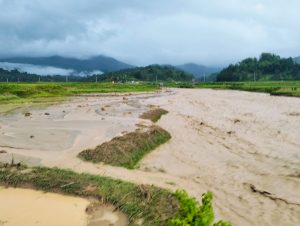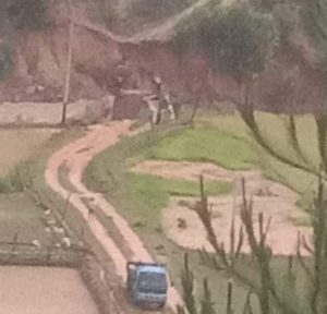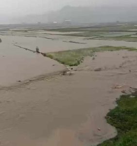 Hujan turun lebat sejak Rabu, 6 Maret, mengakibatkan Sungai Nosu meluap. Air sungai dengan volume cukup besar merambah kemana-mana: menerjang jembatan, meluber hingga merendam ratusan hektar persawahan milik warga.