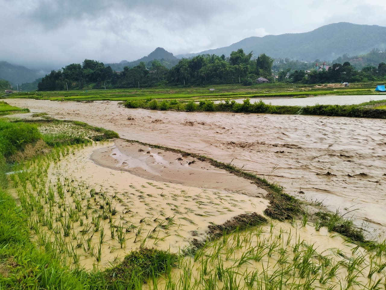 Hujan turun lebat sejak Rabu, 6 Maret, mengakibatkan Sungai Nosu meluap. Air sungai dengan volume cukup besar merambah kemana-mana: menerjang jembatan, meluber hingga merendam ratusan hektar persawahan milik warga.
