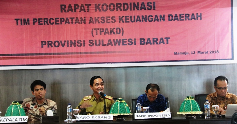TRANSTIPO.com, Mamuju – TPAKD adalah Tim Percepatan Akses Keuangan Daerah. Selasa, 13 Maret 2018, Pemerintah Provinsi Sulawesi Barat menggelar rapat koordinasi (Rakor) TPAKD Sulawesi Barat di lantai tiga Kantor Gubernur Sulawesi Barat.