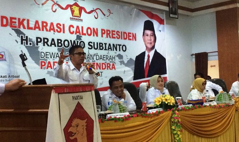 Deklarasi pencalonan Prabowo Subianto selaku Capres 2019 disampaikan langsung oleh Ketua DPD Partai Gerindra Sulawesi Barat Hj. Andi Ruskati Ali Baal, didampinggi Sekretaris Isra Daming Pramulya.