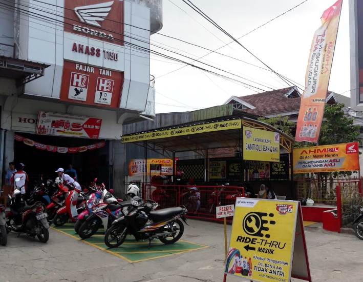 “Ride Thru ini adalah layanan tanpa antri khusus bagi konsumen AHASS yang akan melakukan penggantian Oli, Aki, Ban atau spare part, juga Gear Set, Kampas Rem, Water Coolant, Busi, dan Saringan Udara,” ujar Technical Servic Astra Motor Makassar, Ignatius Nindyatama.