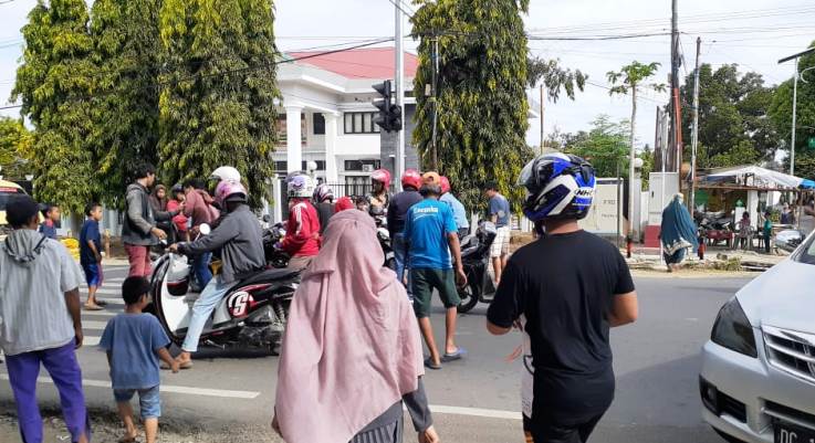 TRANSTIPO.com, Polewali – Kecelakaan terjadi di lampu merah (traffic light) di Jalan Poros Polewali-Wonomulyo, simpang Jalan Stadion-Dg. Ipung, Manding, Polewali, mengakibatkan dua pengendara harus dilarikan ke rumah sakit (RS) untuk mendapatkan pertolongan pertama, Kamis, 18 Juli 2019.