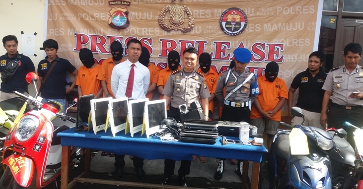 Ketujuh orang itu adalah pencuri barang hias, penjambret, dan pencuri sepeda motor. Jumpa pers di Mapolres Mamuju itu berlangsung, Senin, 5 Juni 2017.