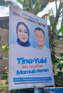 Informasi ini kemudian coba diuji ke para pihak yang ditengarai orang dekat Tina, sapaan Bupati Mamuju, Sutinah Suhardi. Yang muncul ekspresi tak percaya nama Yuki masuk gelanggang. “Tidak pernah terbaca di survey. Juga tidak pernah dirumus,” kata seorang sumber, sekitar awal Juli 2024.